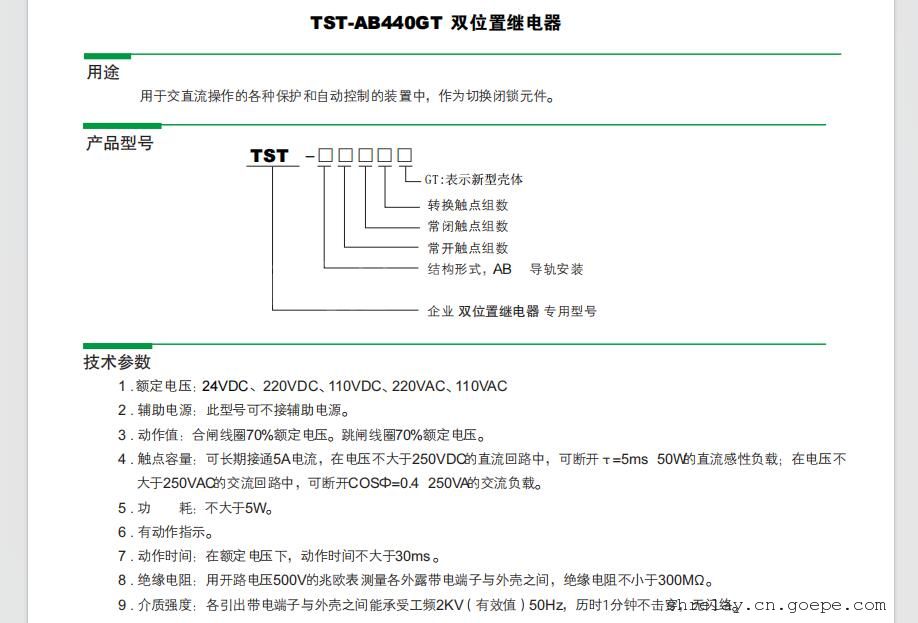 TST600A-GT双位置继电器;TST800A-GT双位置继电器;