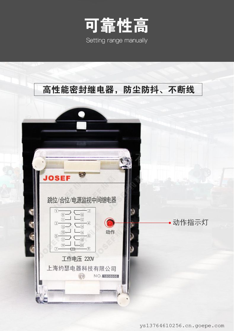 中间继电器 JZ-7Y-201XMT DC110V JOSEF约瑟 延时精度高,运算速度快