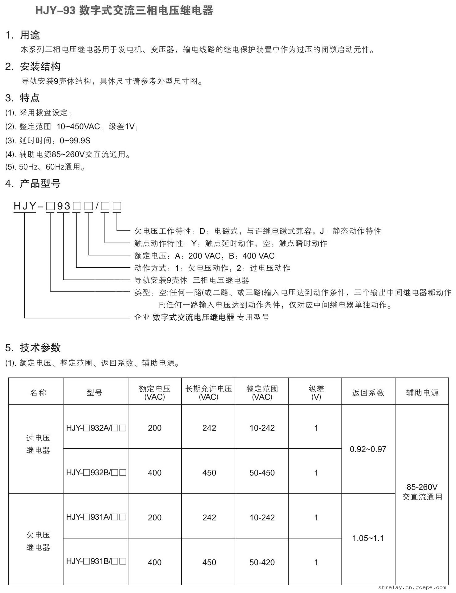 系列型号HJY-931A/D数字式交流三相电压继电器;HJY-932A/D数字式交流三相电压继电器;