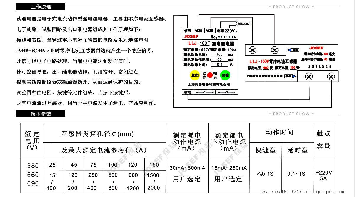 LLJ-FS系列漏电继电器(以下简称继电器)适用于交流电压为660V.至1140V电压系统中,频率为50Hz,电流15~4000A线路中做有无中性点漏电保护.
