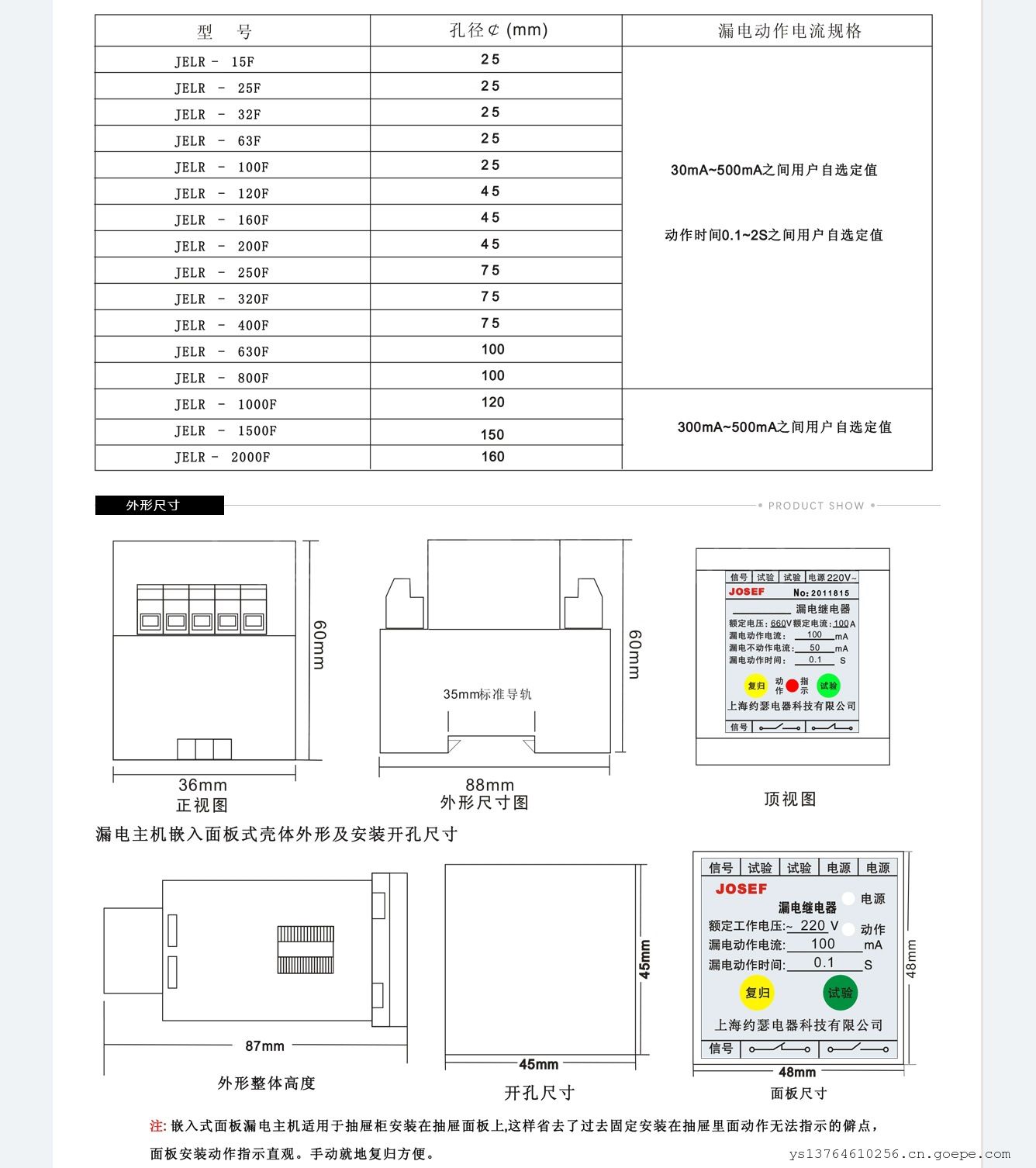 JOSEF约瑟 漏电继电器 JELR-120FT 120A 500mA 面板式安装