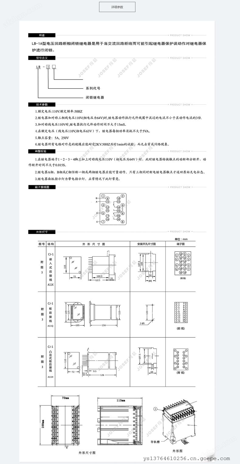 其余同LB-1A电压回路断相闭继电器