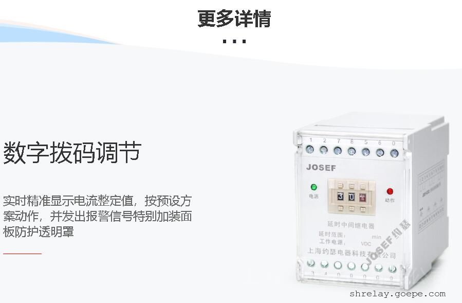 JOSEF约瑟 中间继电器JDZS-1022B 电压DC/AC220V 延时0.02S-9.9S 导轨安装 耐振动