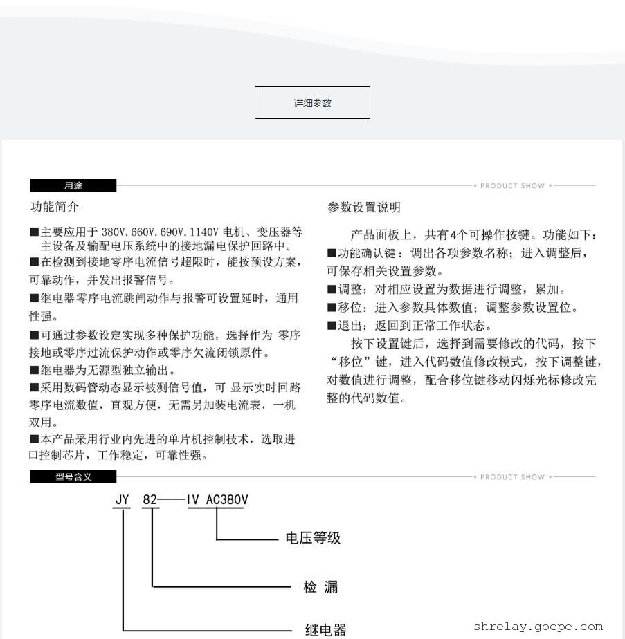 - 用途:该继电器主要用于发电机、变压器、输变电线路的继电保护装置中,作为过电压保护或低电压闭锁启动元件。同时,它也可以与分励脱扣器或失压脱扣器的断路器、交流接触器、磁力启动器等组成漏电保护装置,用于漏电和触电保护。