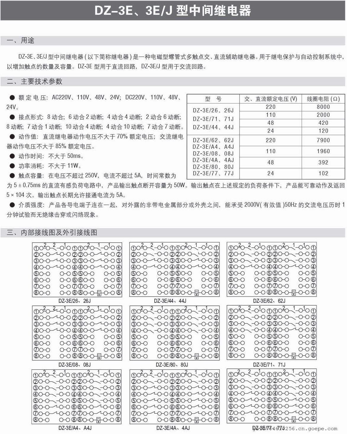 - 在电压不超过250V,电流不超过5A,时间常数为5±0.75毫秒的直流有感负荷电路中,产品输出触点的断开容量为50瓦。