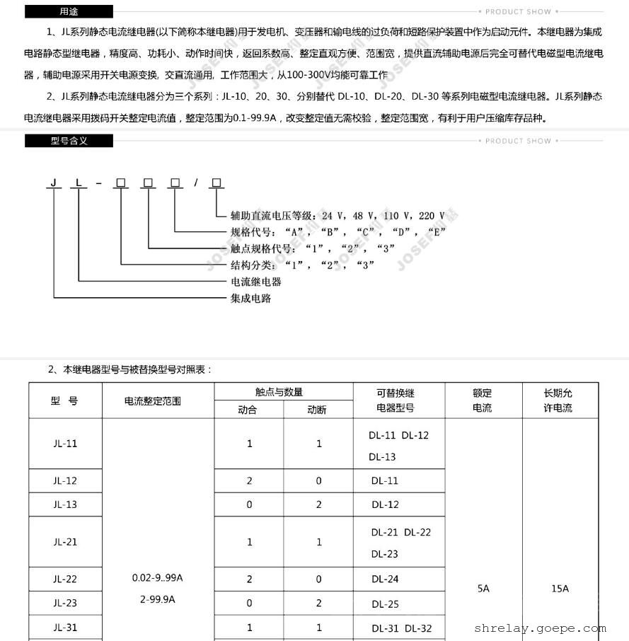- 低功耗:相比传统电磁型电流继电器,JL-11/2G具有更低的功耗,有助于降低电力系统的能耗。