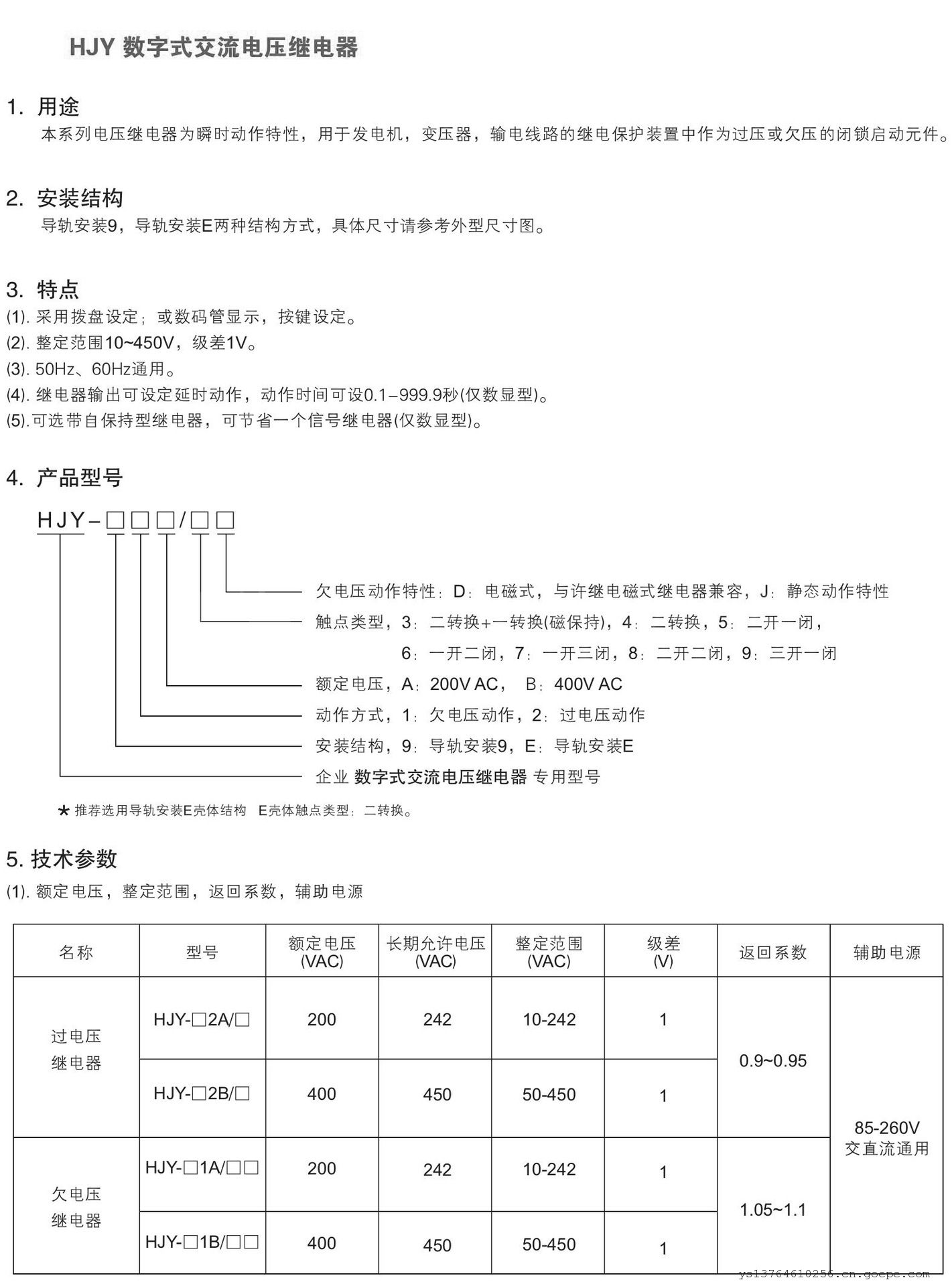 HJY-E1A/3D数字式交流电压继电器;(数显型)