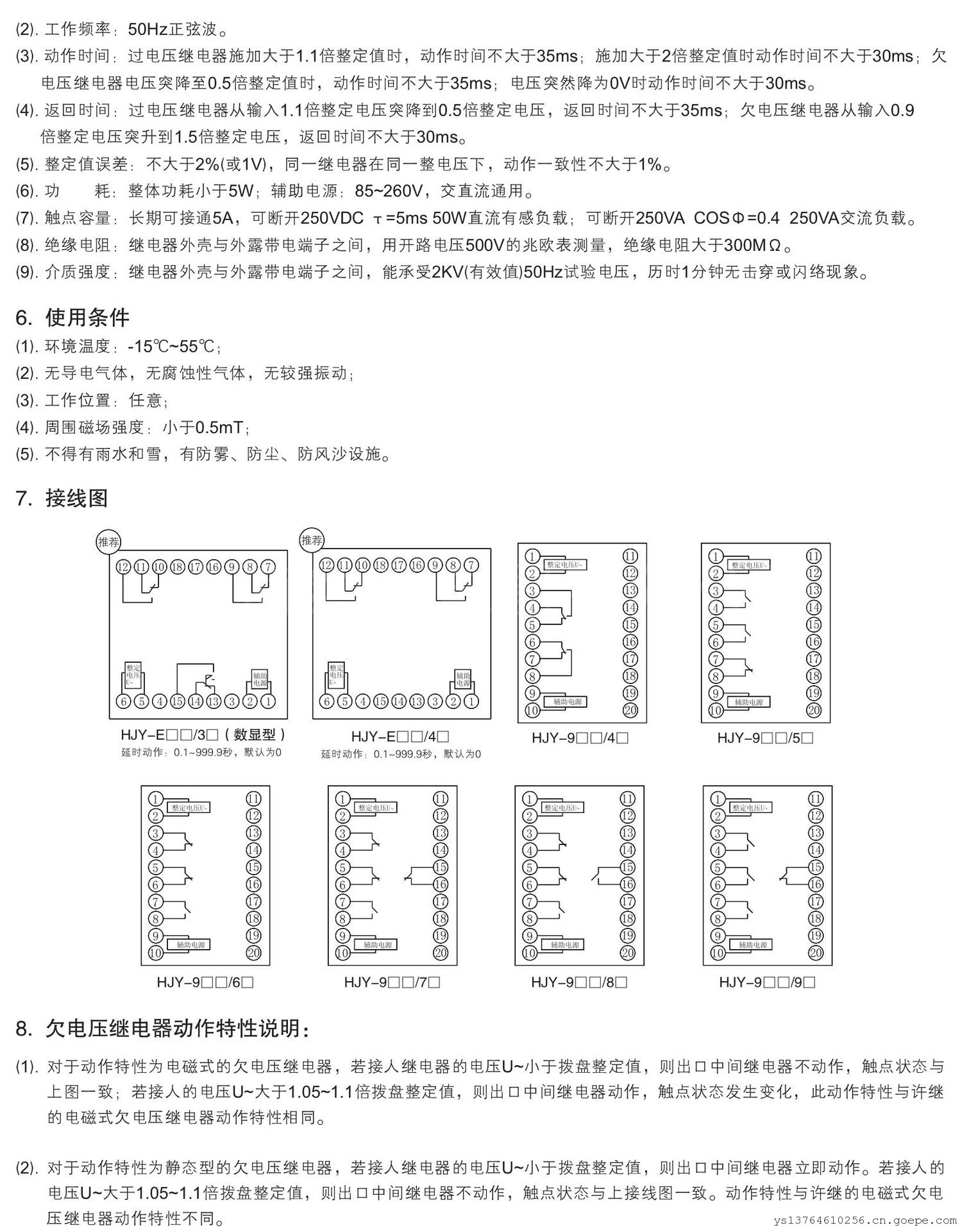 本系列电压继电器为瞬时动作特性,用于发电机,变压器,输电线路的继电保护装