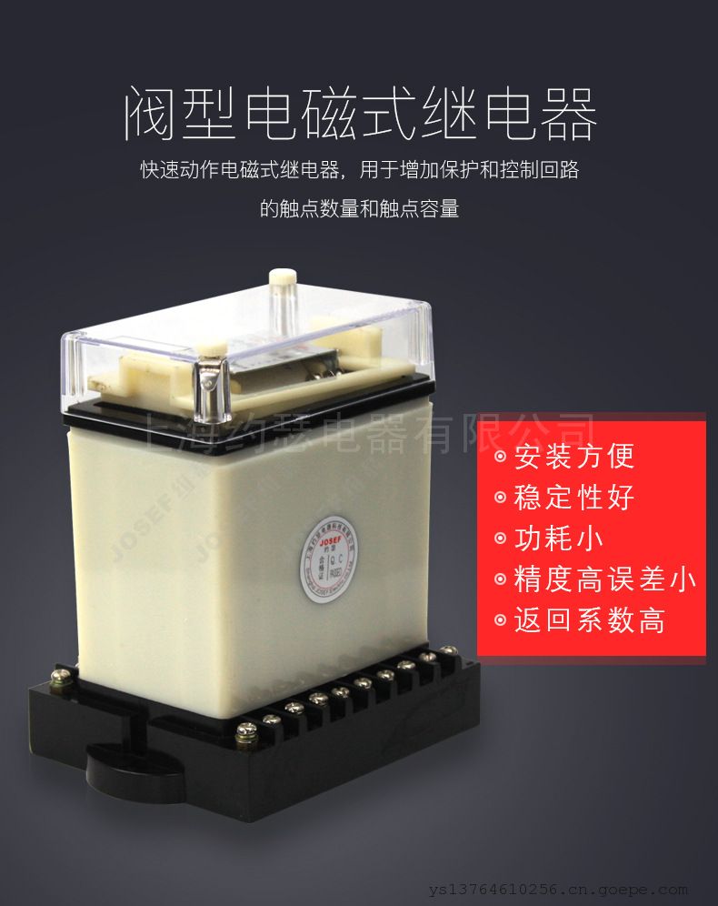 - JOSEF约瑟DZK-216快速中间继电器 DC220V 配电阻 板前接线
