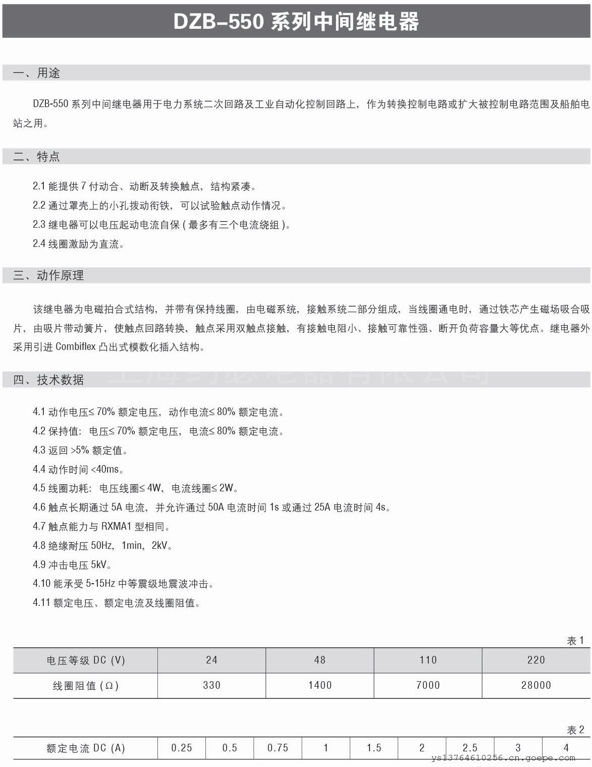 片,由吸片带动簧,使触点回路转换,触点采用双触点接触,有接触电阻小、接触可靠性强、断开负荷容量大等优点。继电器外