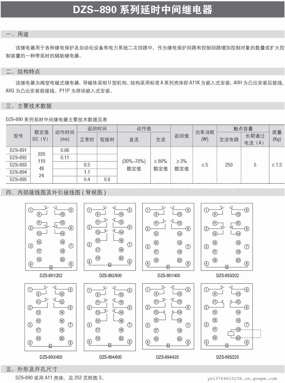 DZS-8系列延时中间继电器产品用于各种保护和自动控制线路中,以增加保护和控制回路的触电数量和触电容量。
