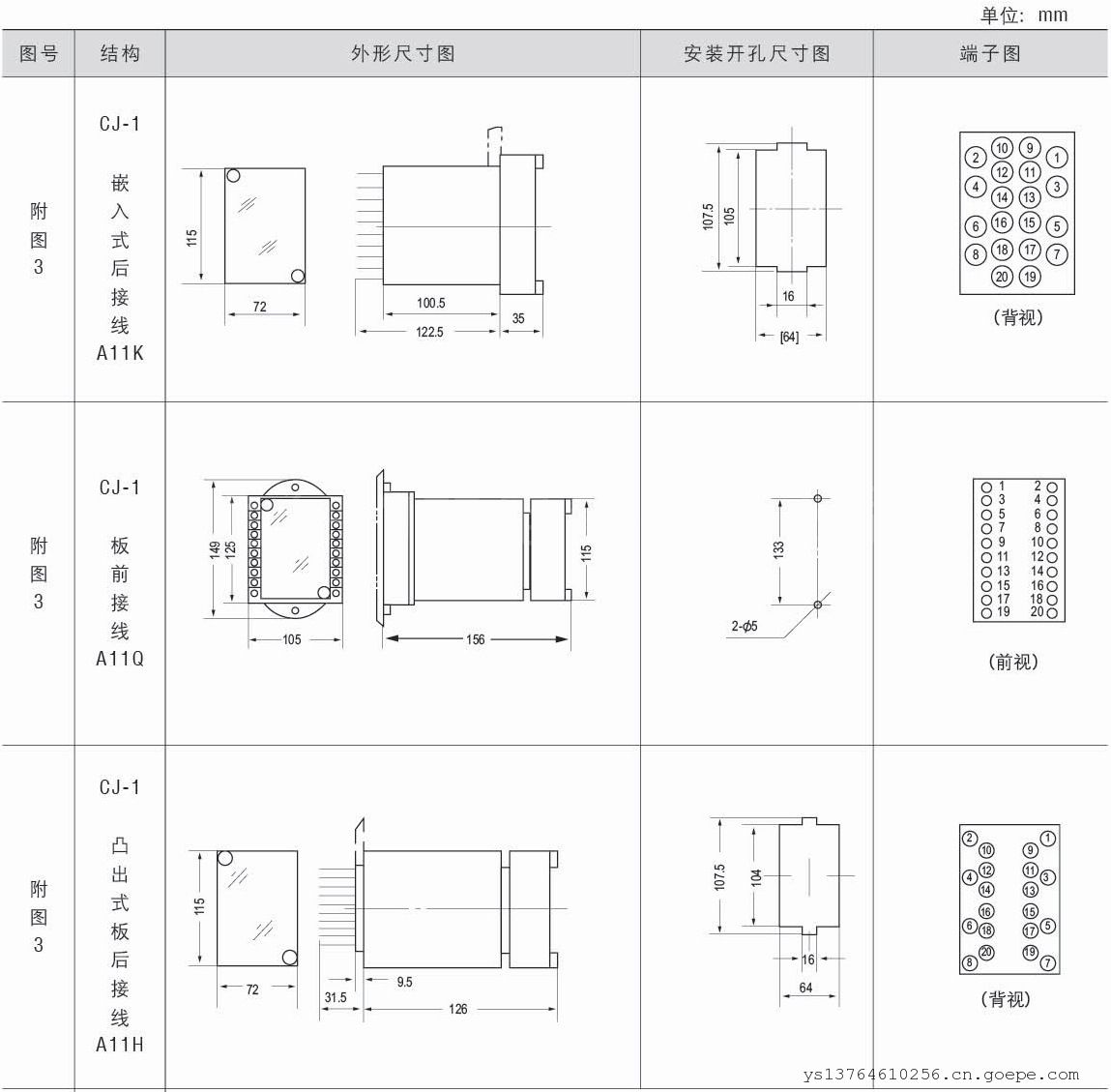 7 端子接线图四,继电器外形尺寸及安装尺寸图