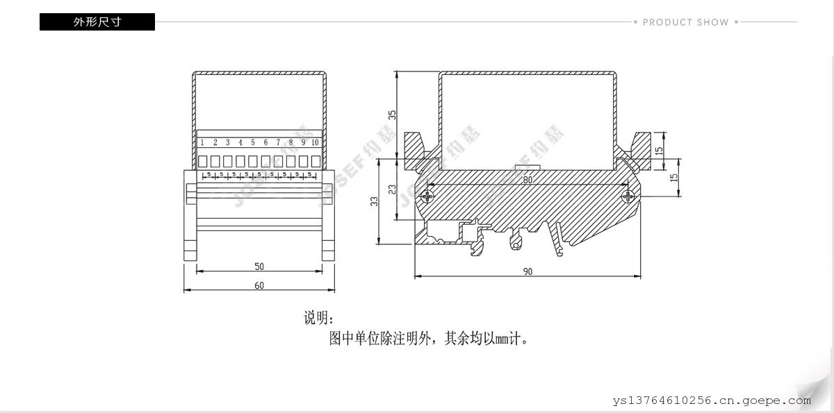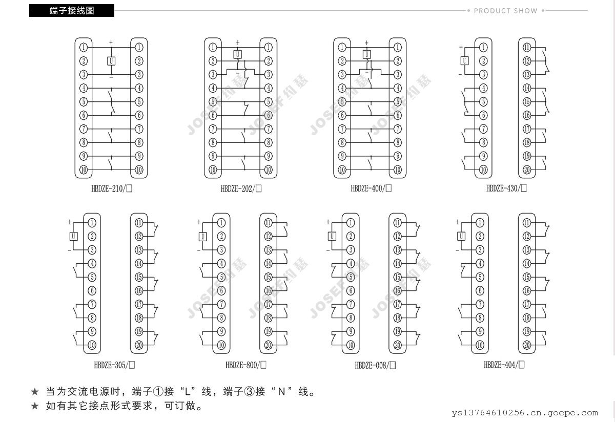 6)机械寿命:触点在空载状态下为300万次。端子接线图(端子排宽为 22mm)