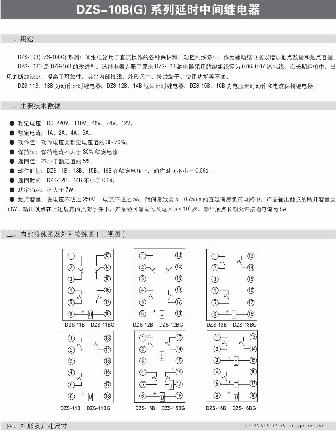DZS-11B、13B为动作延时继电器;DZS-12B、14B返回延时继电器;DZS-15B、16B为电压延时动作和电流保持继电器。
