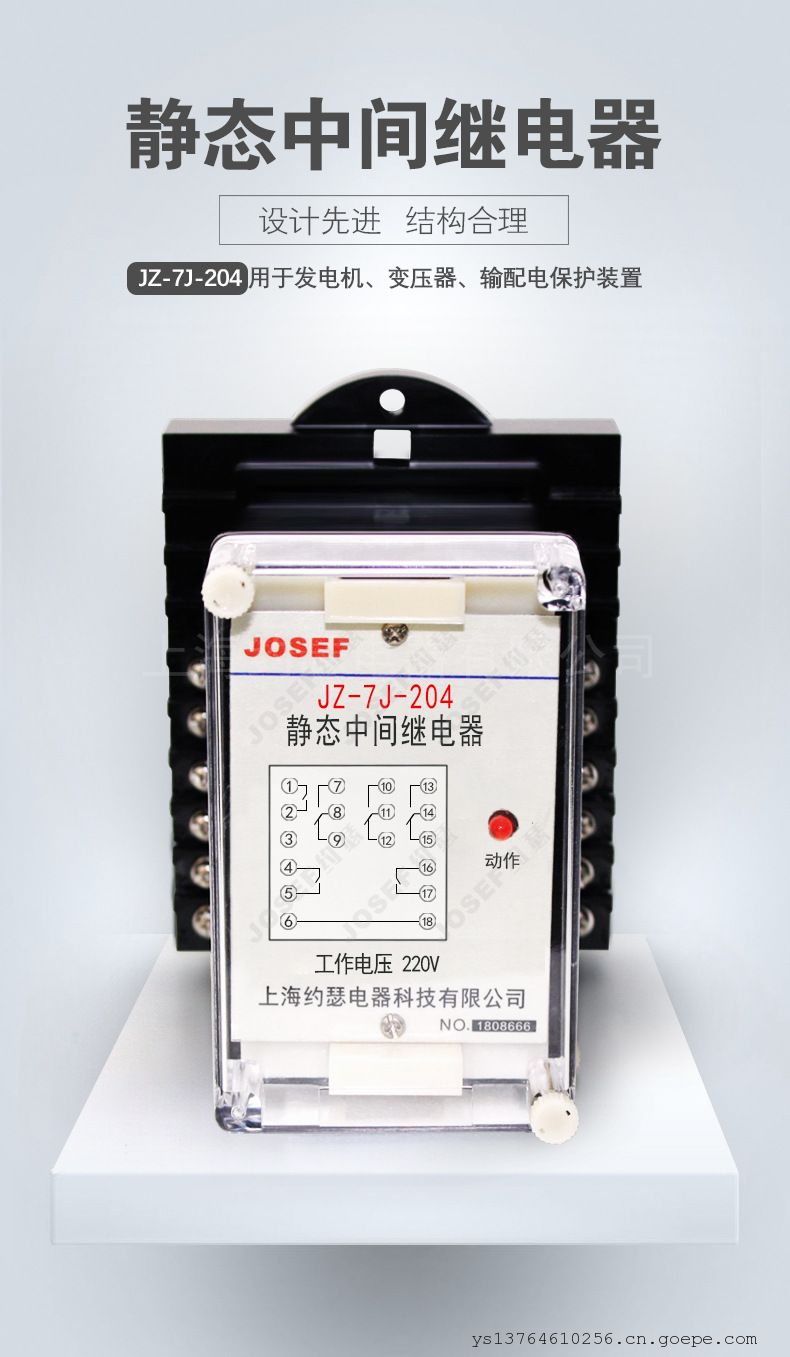 - JOSEF约瑟JZ-7J-204静态中间继电器 AC220V 不带板前底座