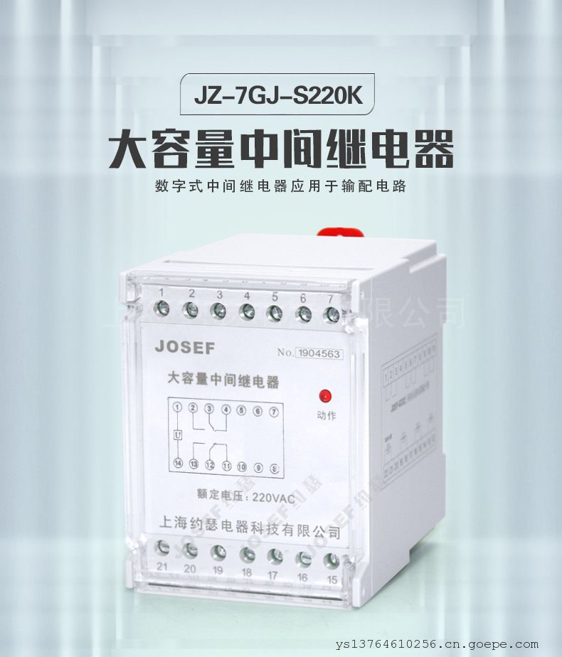 品牌:JOSEF约瑟 型号:JZ-7GJ-S220K 应用领域:中间 产品系列:JZ-7G系列 触点负载:40W 触点切换电流:220V
