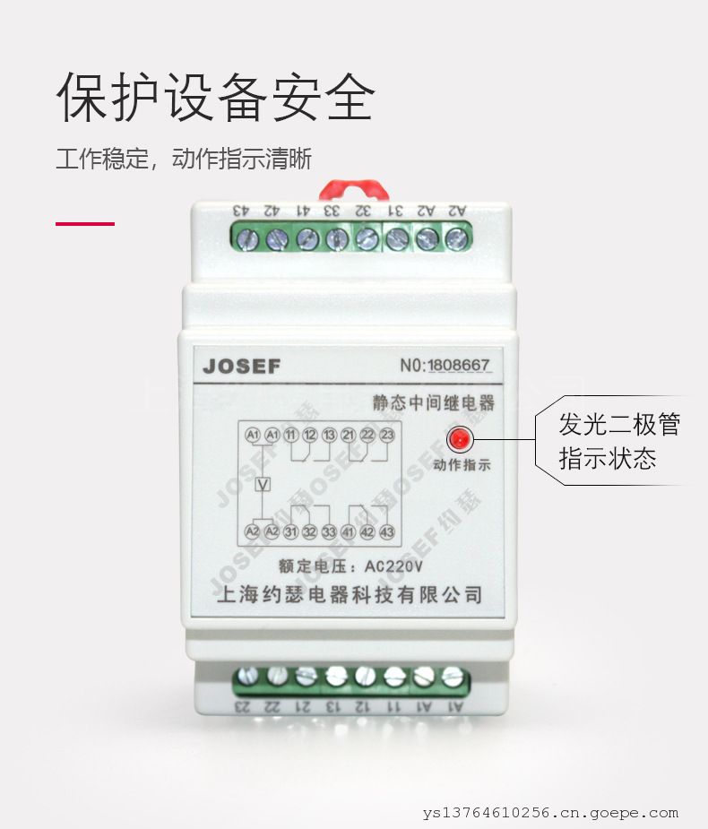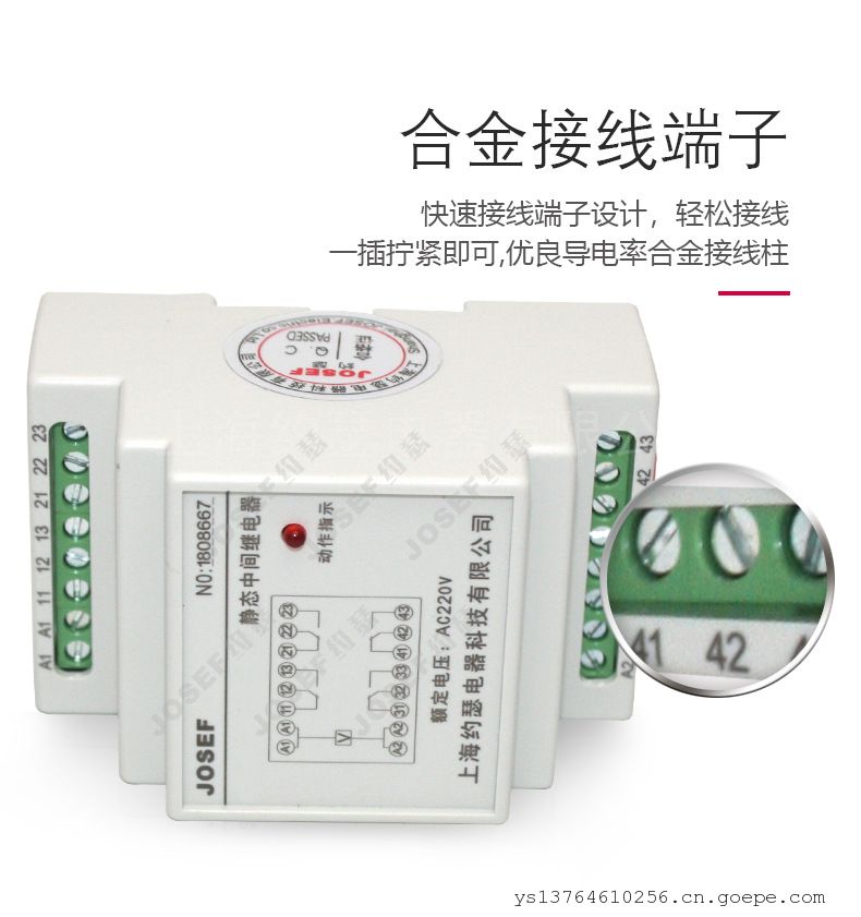品牌:JOSEF约瑟 型号:SRS-110VDC-4Z-10A 应用领域:中间 产品系列:SRS系列 触点负载:40W 触点切换电流:220V