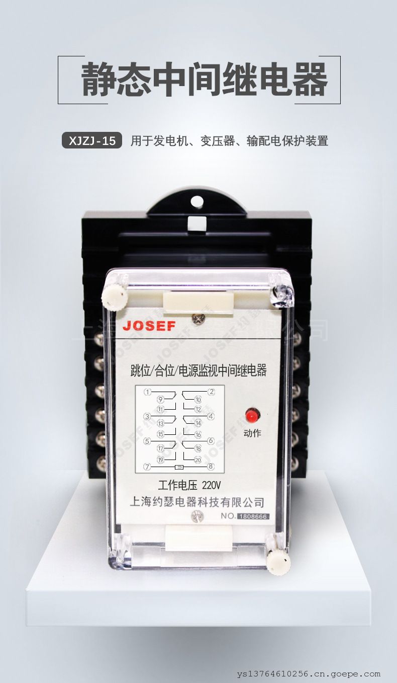 品牌:JOSEF约瑟 型号:XJZJ-15 应用领域:中间 产品系列:XJZ系列 触点负载:40W 触点切换电流:220V