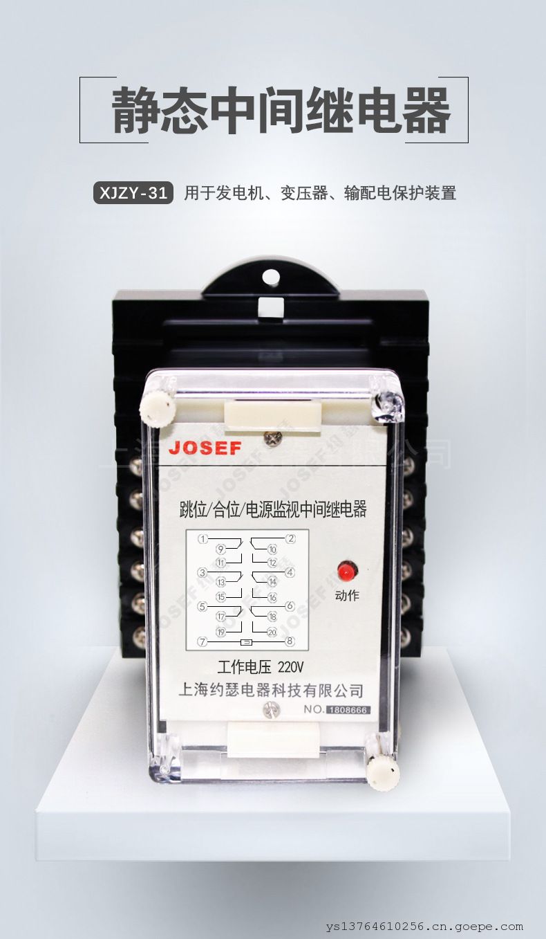 品牌:JOSEF约瑟 型号:XJZY-31 应用领域:中间 产品系列:XJZ系列 触点负载:40W 触点切换电流:220V
