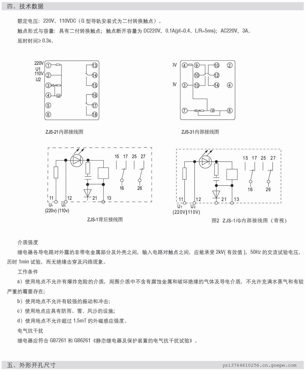 4.5 保持值 0.7~1.2倍额定电压 JZ-7系列快速中间继电器动作时间和返回时间不大于15mS。
