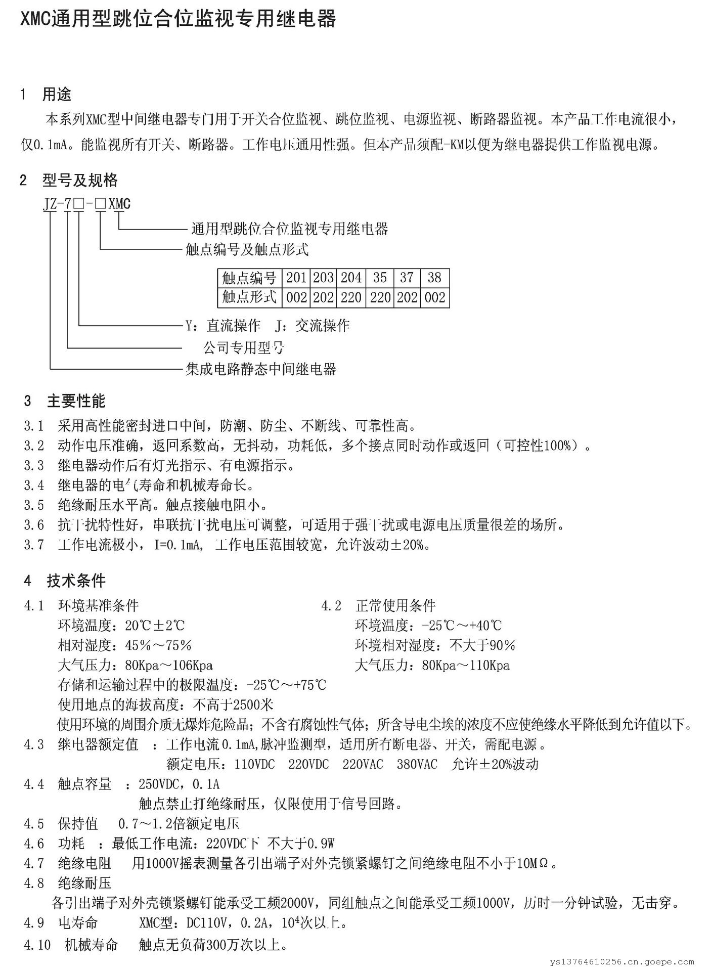 4.9电寿命XMC型:DClIOV,0.2A,10000次以上。