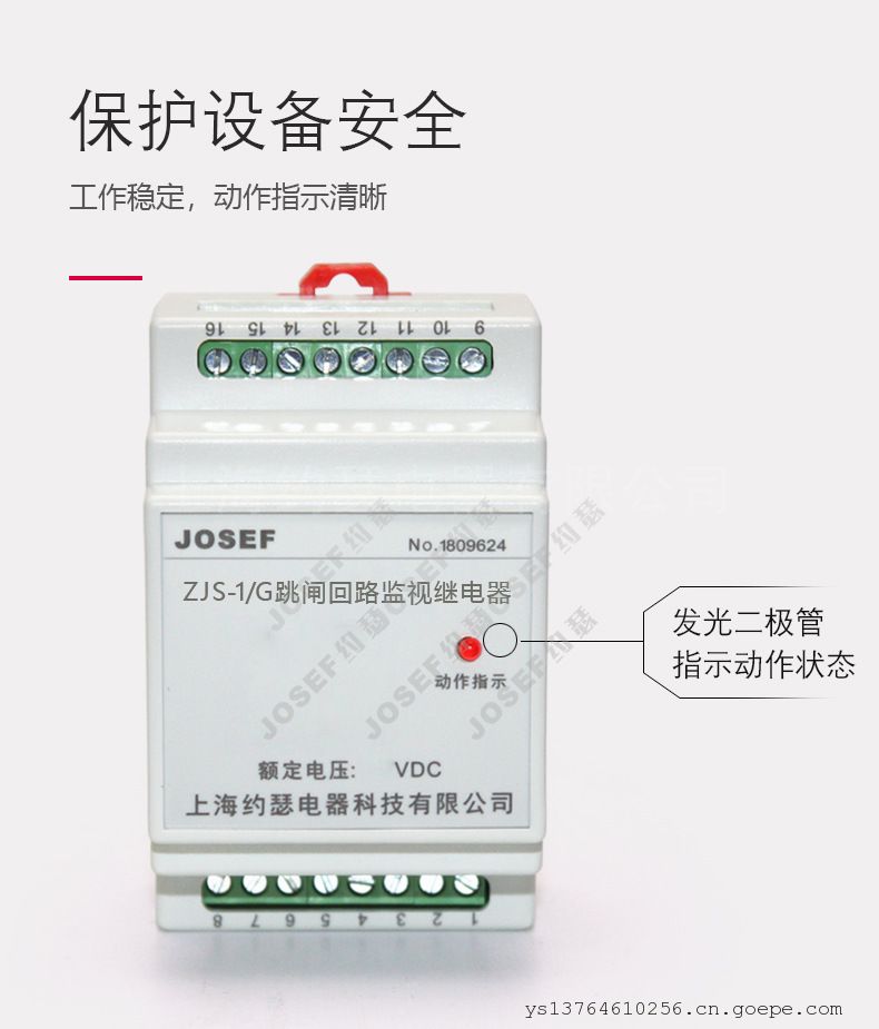 - JOSEF约瑟ZJS-1/G跳闸回路监视继电器 DC220V 导轨安装