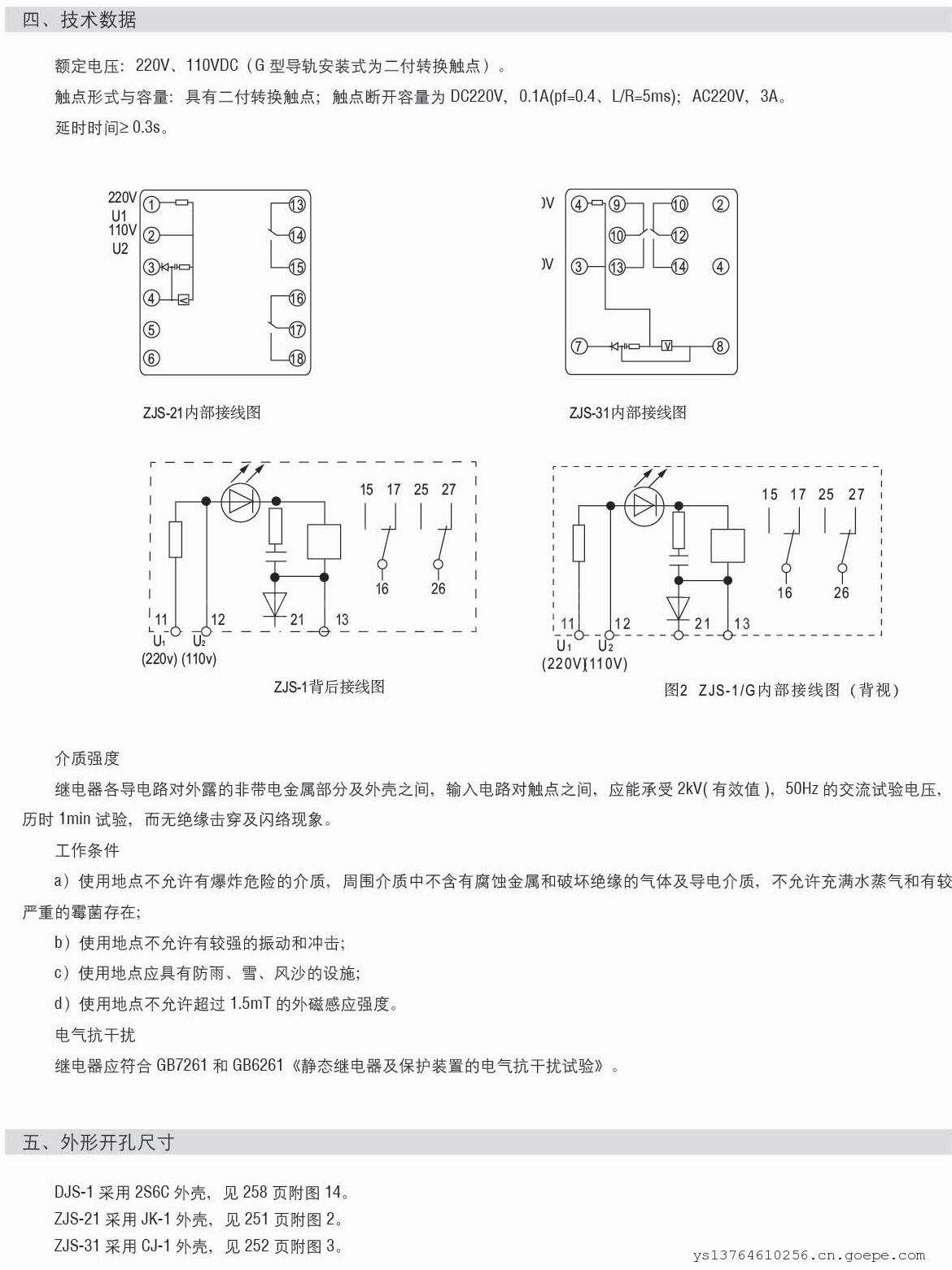 (4). 触点容量:可长期接通5A电流,在电压不大于250VDC的直流回路中,可断开τ=5ms 50W的直流感性负载,