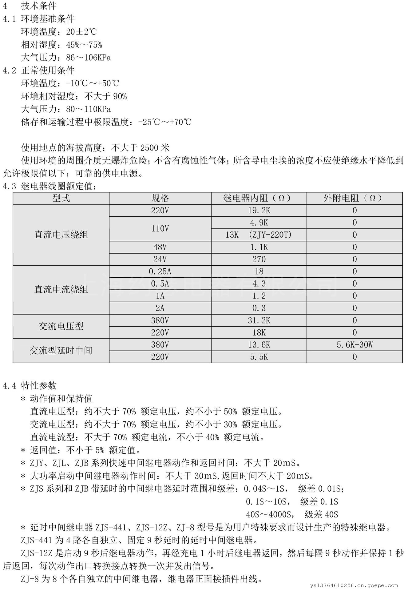 4.5 保持值 0.7~1.2倍额定电压 JZ-7系列快速中间继电器动作时间和返回时间不大于15mS。