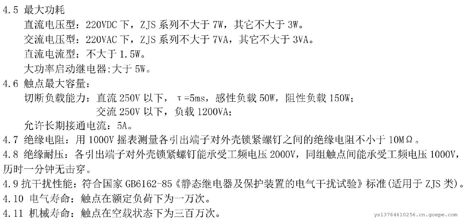 4.10 机械寿命 触点无负荷300万次以上。