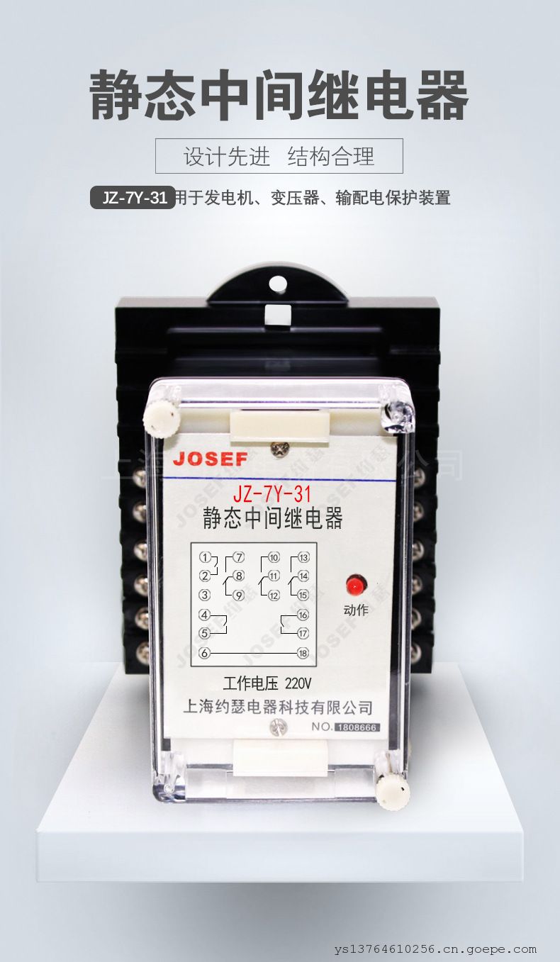 品牌:JOSEF约瑟 型号:JZ-7Y-31 应用领域:中间 产品系列:JZ-7系列 触点负载:40W 触点切换电流:220V