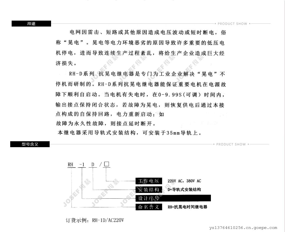 品牌:JOSEF约瑟 型号:RH-1D 应用领域:晃电 产品系列:RH-D系列 触点负载:20W 触点切换电流:220V