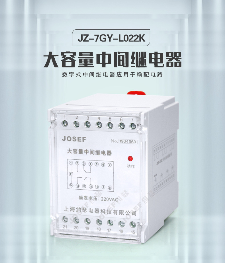 品牌:JOSEF约瑟 型号:JZ-7GY-L022K 应用领域:中间 产品系列:JZ-7G系列 触点负载:40W 触点切换电流:220V
