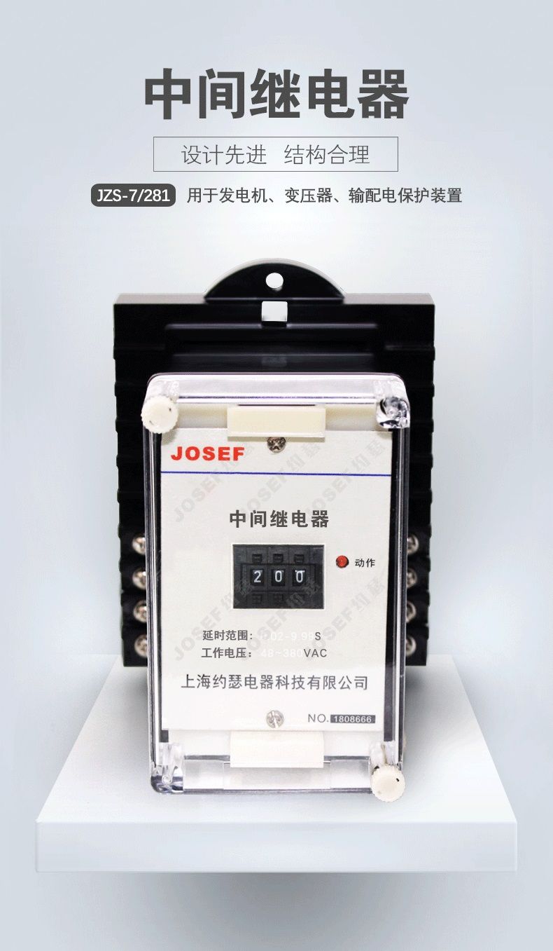 - JOSEF约瑟JZS-7/281延时中间继电器 DC110V 板前带座