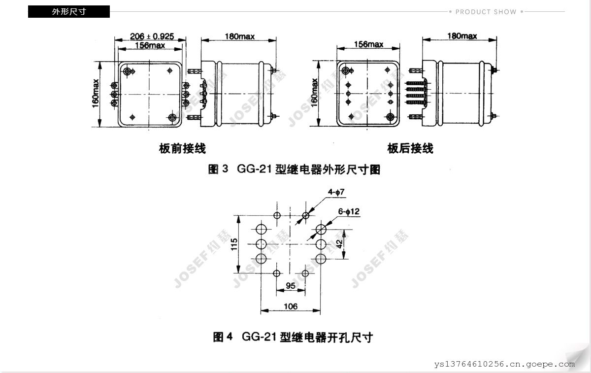 品牌:JOSEF约瑟 型号:GG-21 应用领域:功率 产品系列:GG-21型 触点负载:40W 触点切换电流:220V