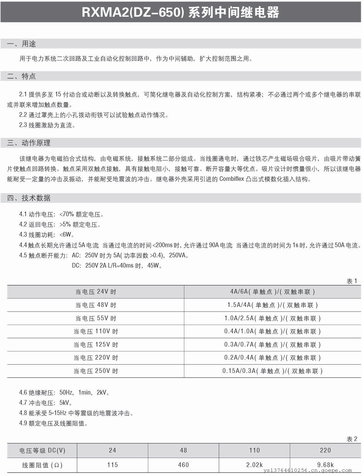 额定电压及线圈阻值。表2