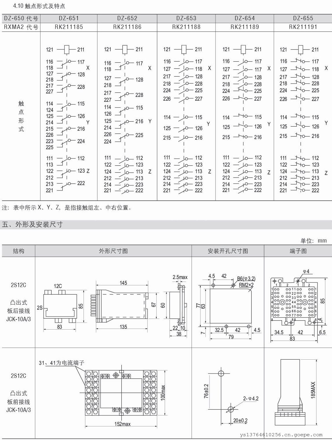 系列型号:DZ-651中间继电器;