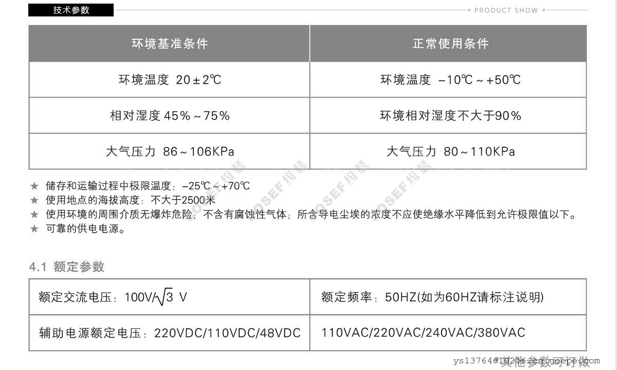 4.3辅助电源电压允许波动范围: 0.8~ 1.15倍额定电压