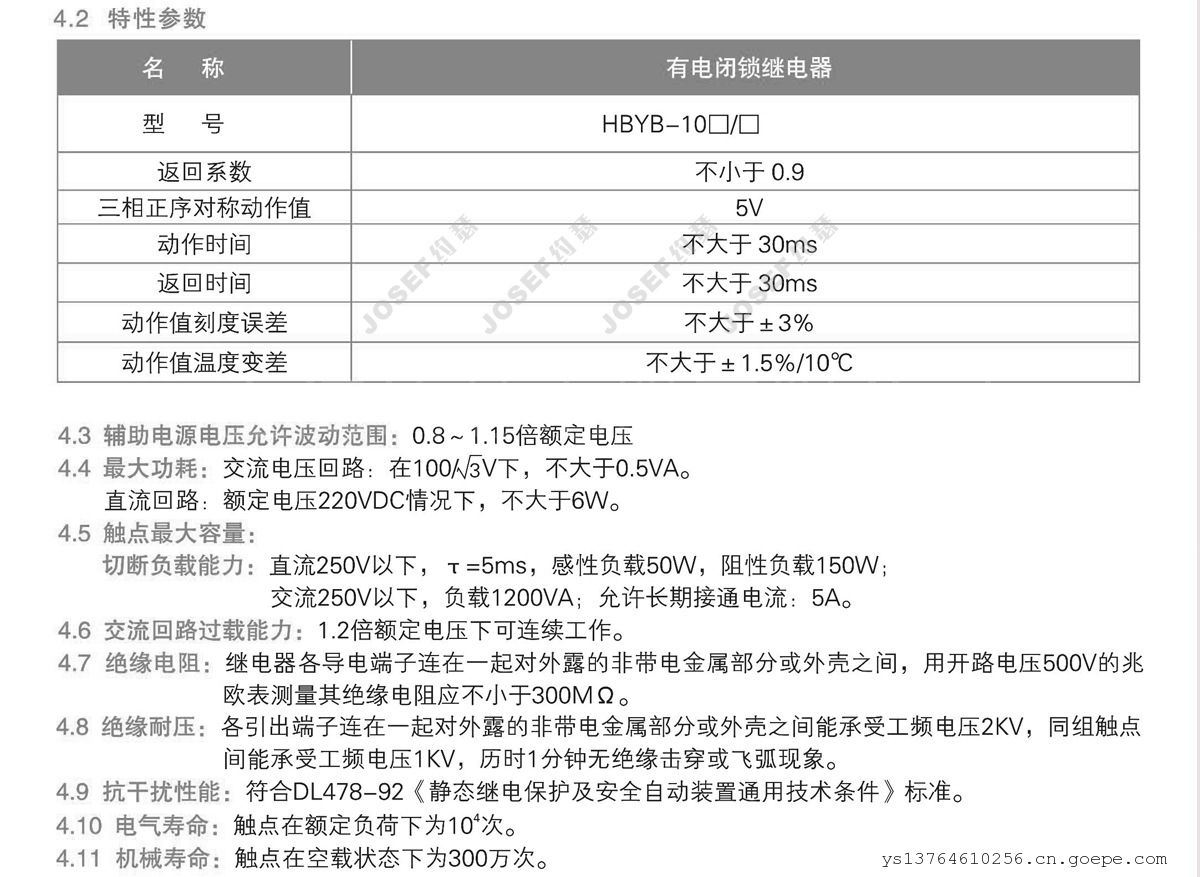 4.9抗干扰性能:符合DL478- -92 《静态继电保护及安全自动装置通用技术条件》标准。