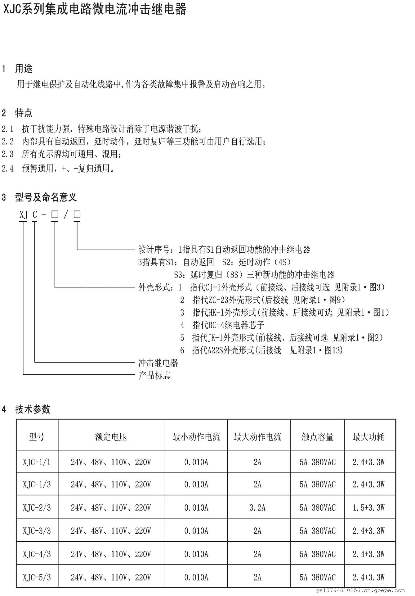 XJC-2/3 24V、48V、110V、220V 0.010A 3.2A 5A 380VAC
