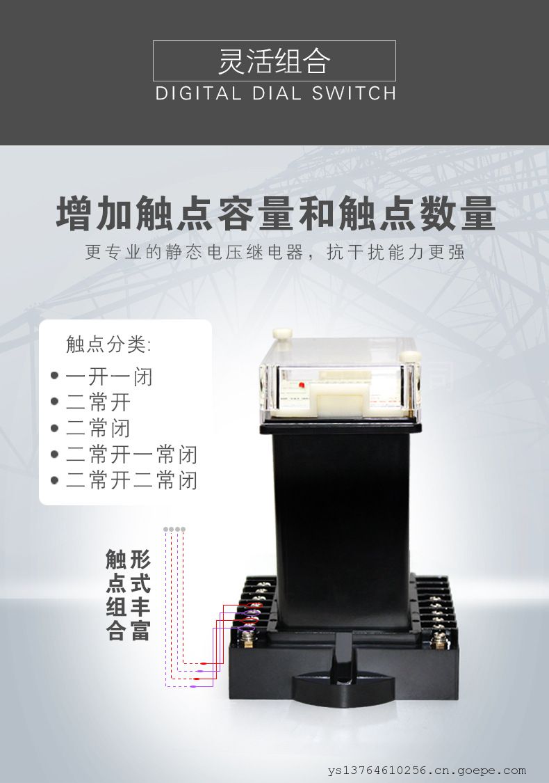 用途冲击继电器主要用于继电保护及安全自动装置回路中作各类故障集中报警启动音响之用,即在电站、变电所及各相关工程系统中央音响报警回路作重复动作之元件。