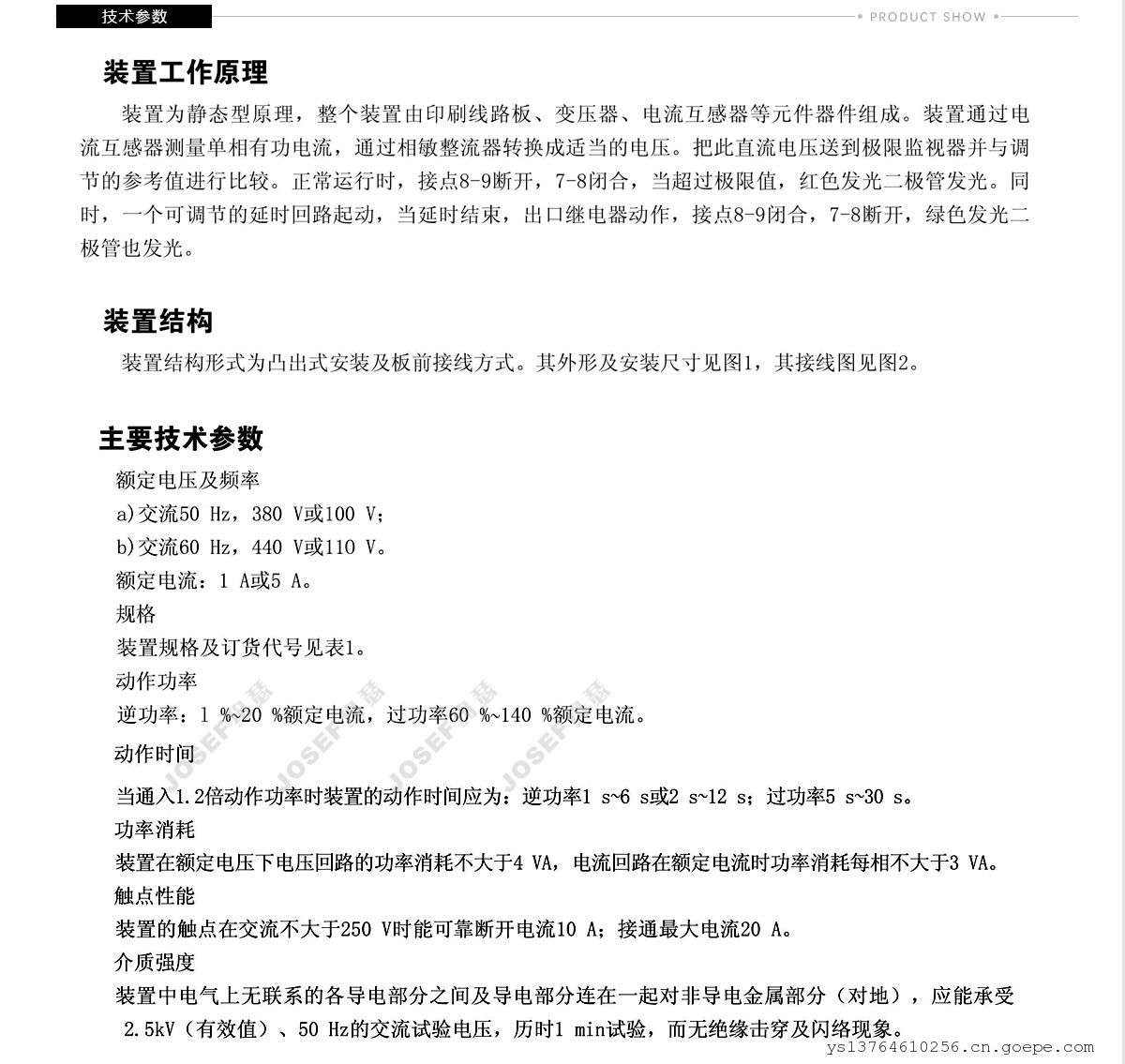 逆功率:1%~20%额定电流,过功率60%~140%额定电流。
