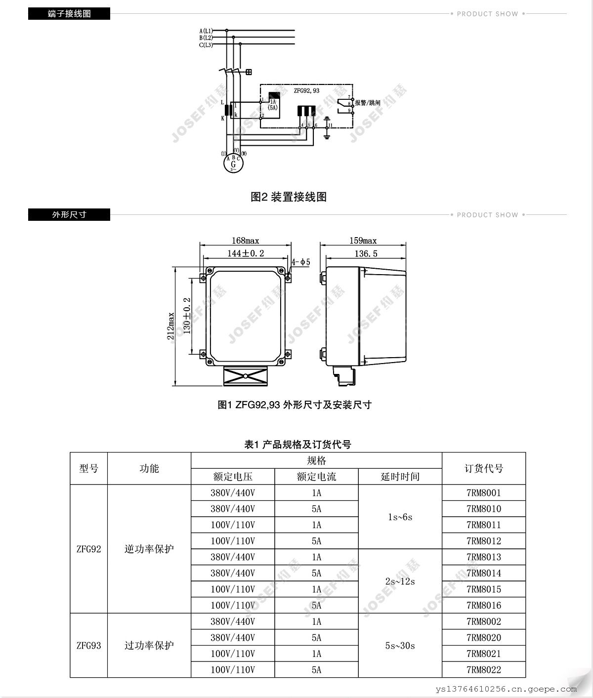 - JOSEF约瑟ZFG92.93(SRG-21) 7RM8014逆功率保护器 380V 5A 延时时间:2S~12S