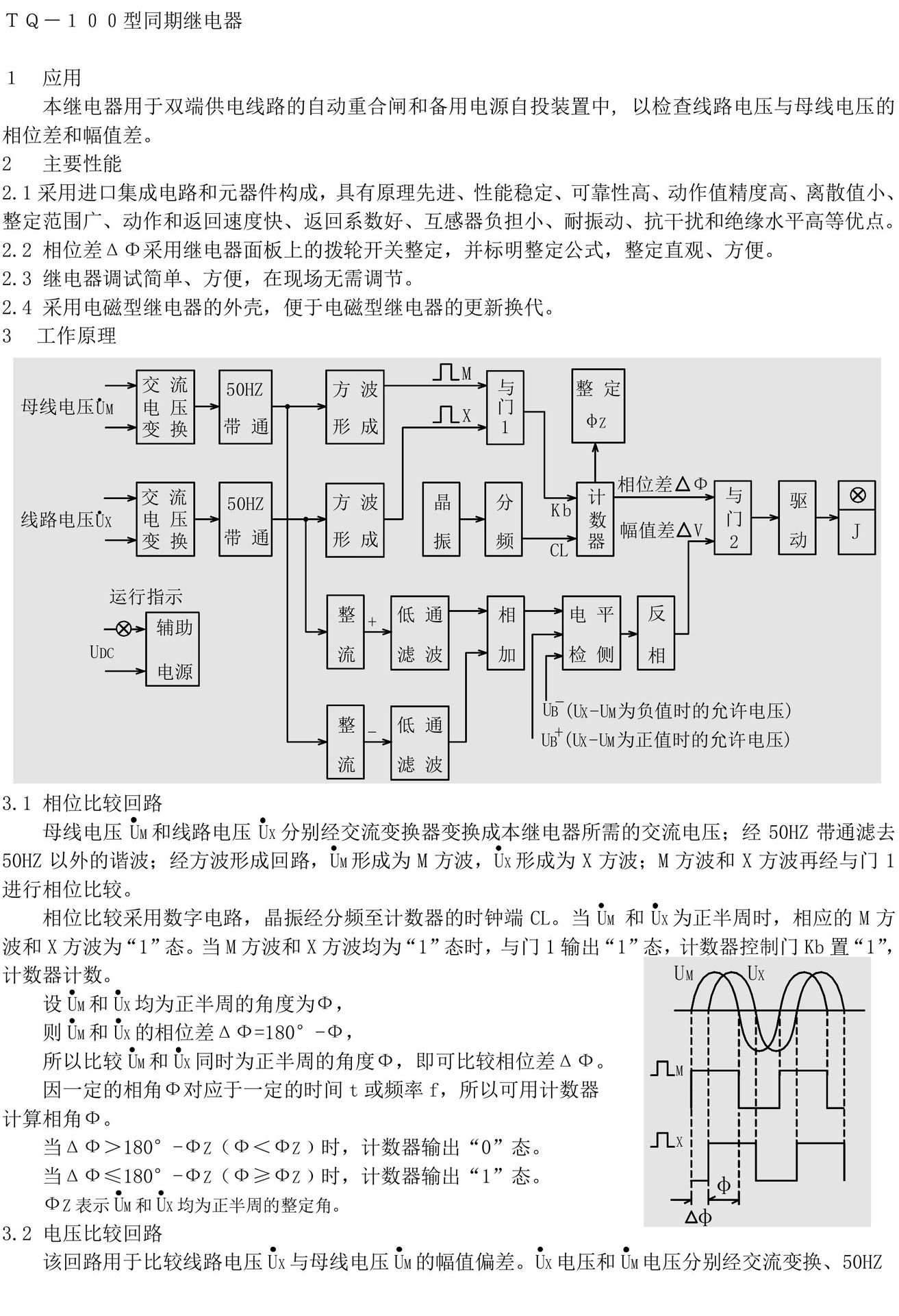 本继电器用于双端供电线路的自动重合闸和备用电源自投装置中,以检查线路电压与母线电压的