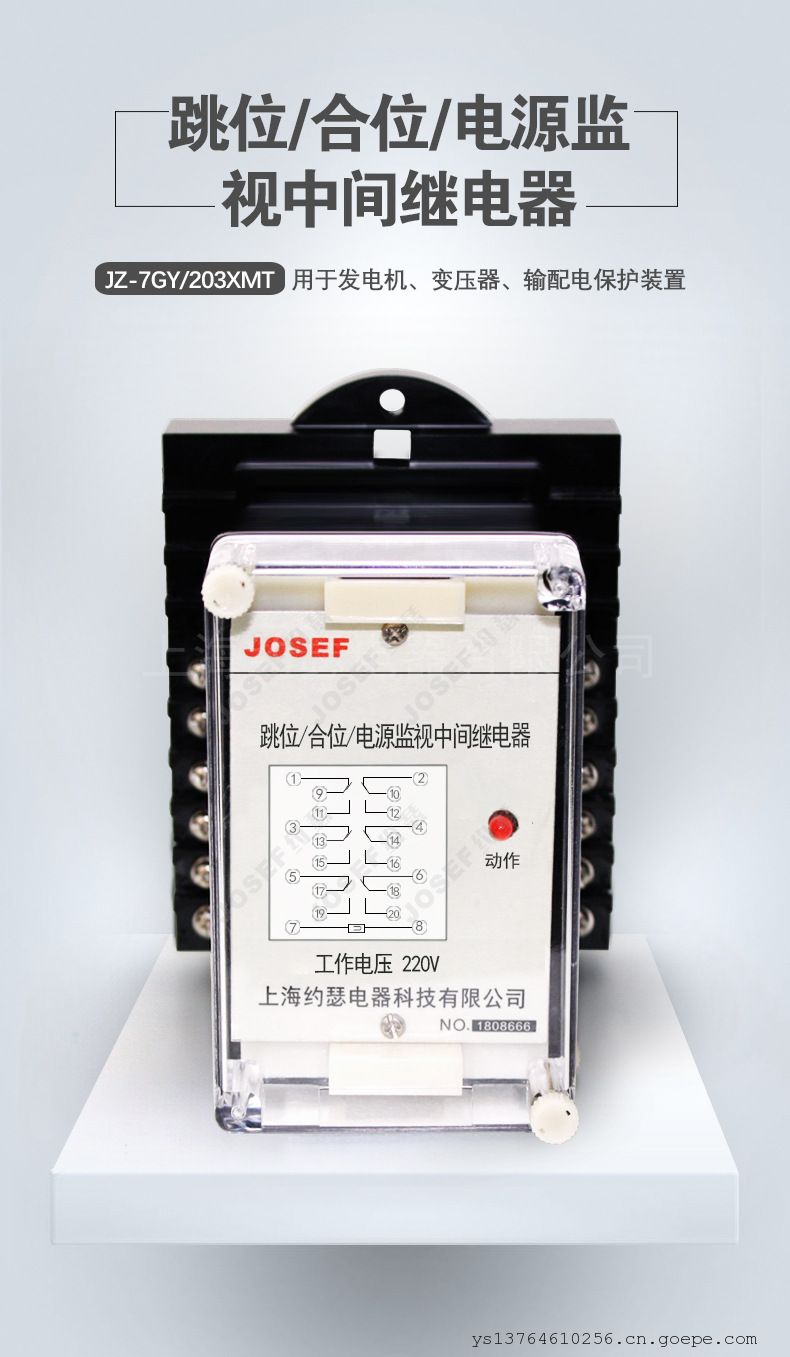 订货时须注明继电器型号规格、结构形式代号、板前或板后接线方式、数量及其它要求。上海约瑟电器有限公司( Shanghai Josef electric and technology Co.,Ltd.)是一家从事高中低压电器、输变配电气和工业自动化控制电气产品营销和技术服务的性公司。公司自创建以来,依靠灵活的经营模式,优质的服务态度,努力进取,开拓市场;承接完成了大量高中低压配电系统工程,工业自动化系统工程和产品营销服务,凭借优质的技术服务和贴心售前、售中、售后服务,赢得广大客户的青睐和信赖。