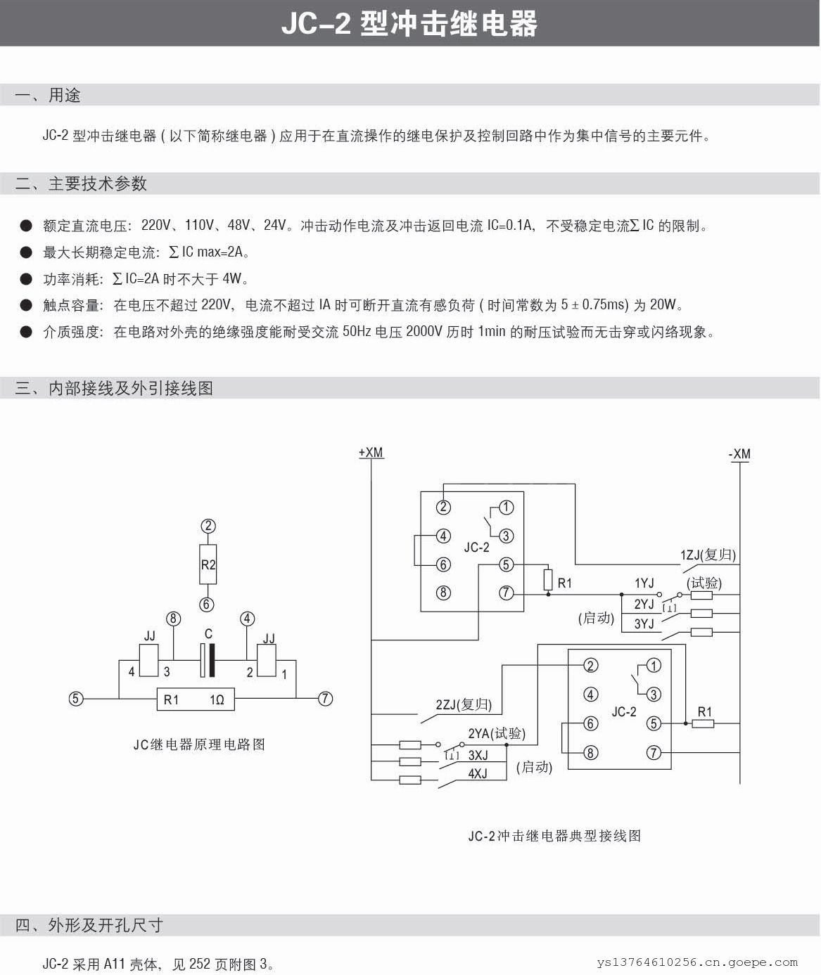 额定直流:220V、110V、48V、24V。冲击动作电流及冲击返回电流IC=0.1A,不受稳定电流∑IC的限制。