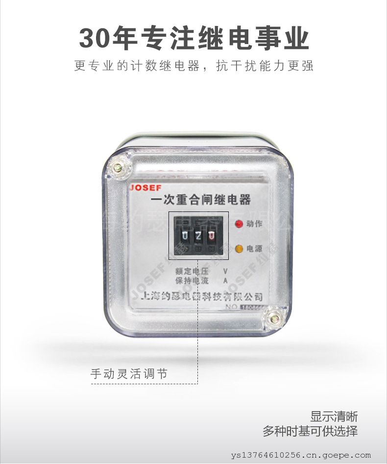 品牌:JOSEF约瑟 型号:JH-3 应用领域:重合闸 产品系列:JH系列 触点负载:50W 触点切换电流:220V