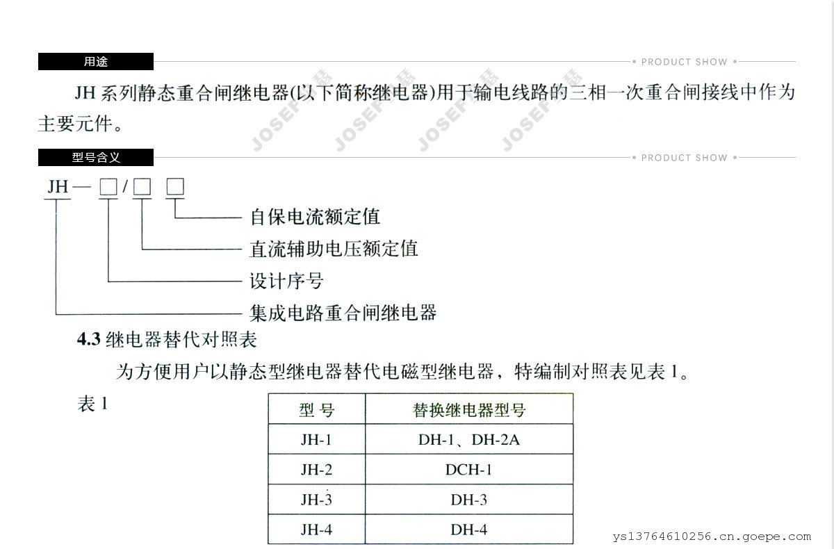 2.1JH系列静态重合闸继电器可以替代老产品机电型DH系列重合闸继电器,用户无需更改继电器屏后接线,可以现场直接更换。