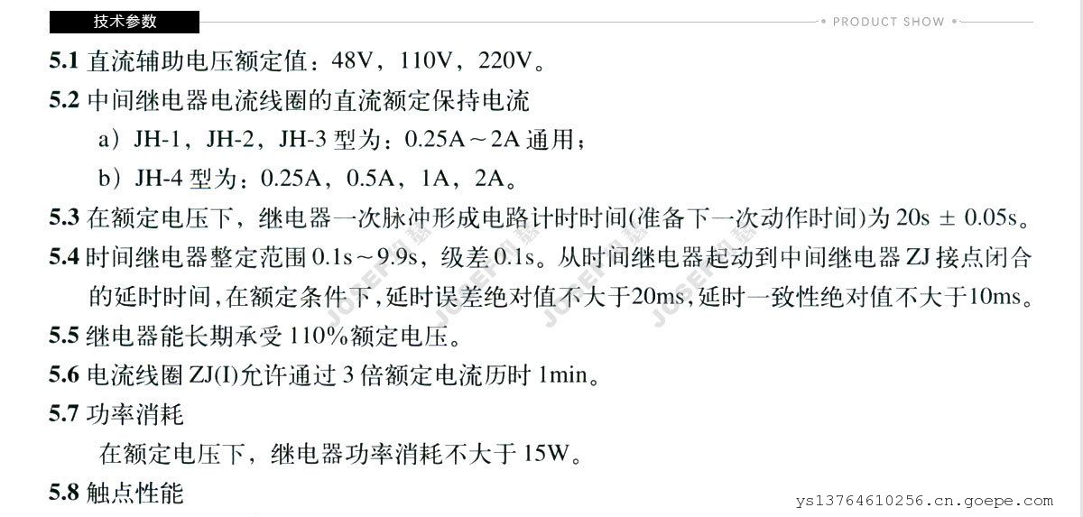5.1 直流辅助电压额定值:48V,110V,220V5.2 中间继电器电流线圈的直流额定保持电流
