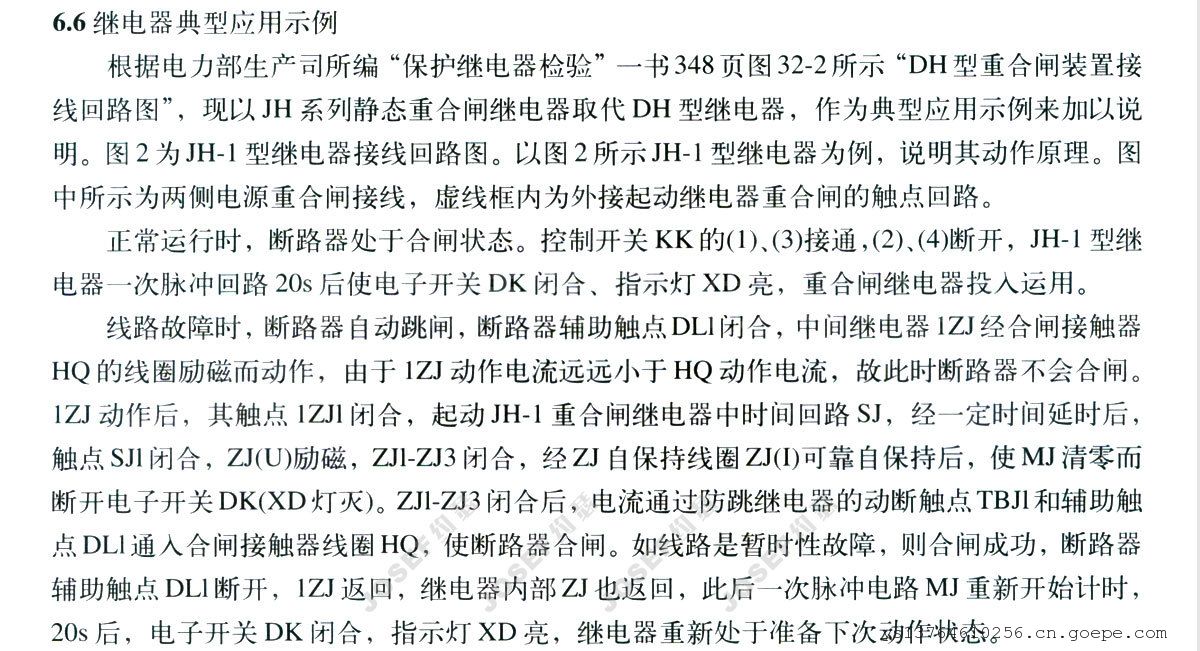 JH 系列静态重合闸继电器(以下简称继电器)用于输电线路的三相一次重合闸接线中作为主要元件。