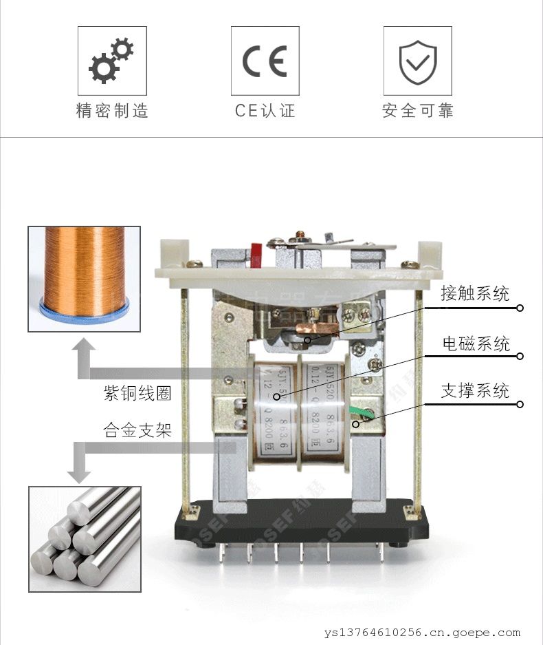 12. 继电器的导电部分对外壳(外壳上的非导电金属部分)的绝缘,能耐受50Hz交流电压2kV历时1min的试验。